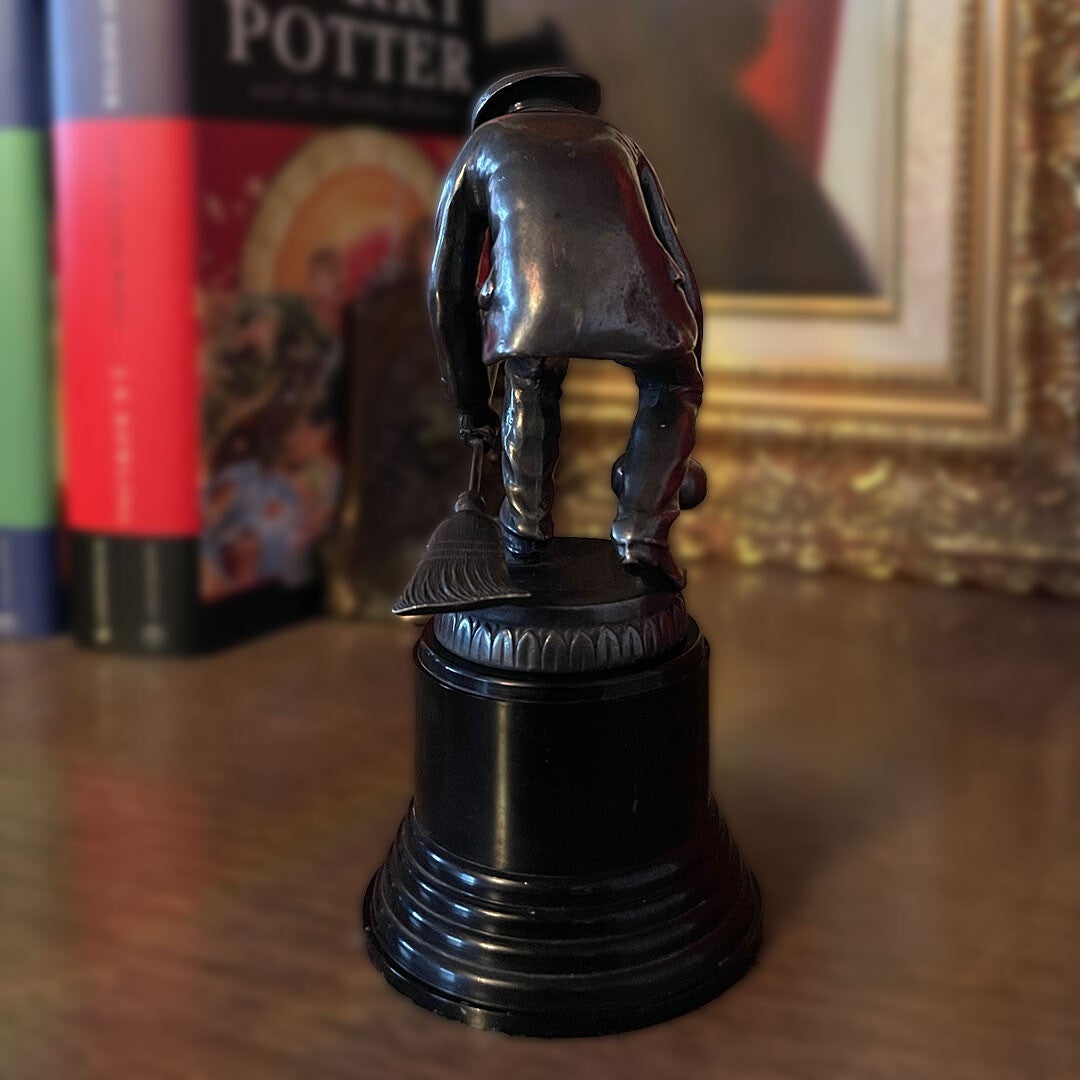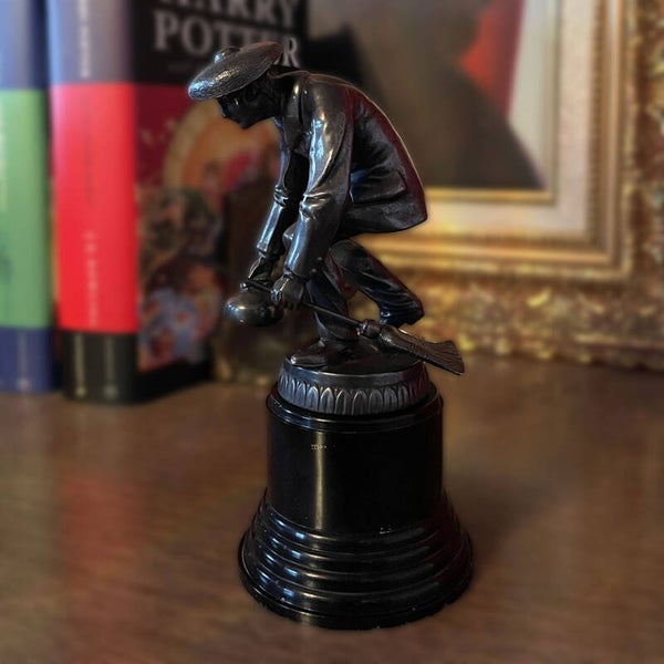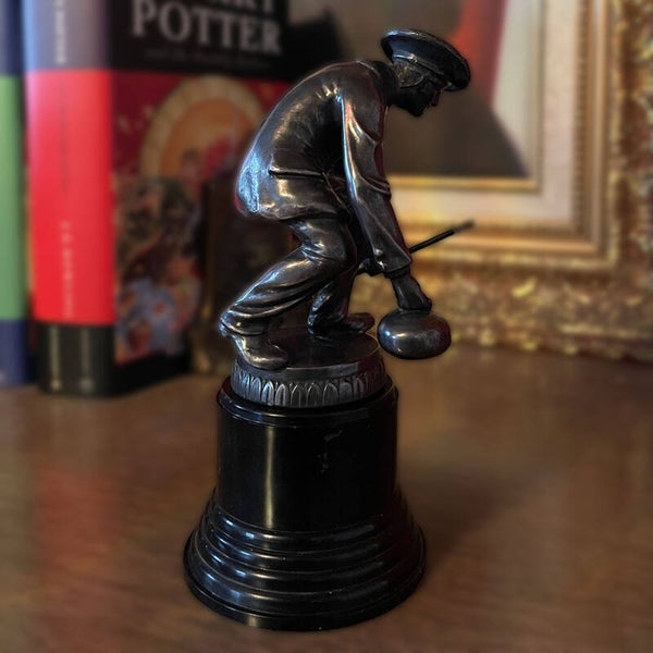 Old Vintage Men's Curling Trophy Cast Metal & Black Plastic base.