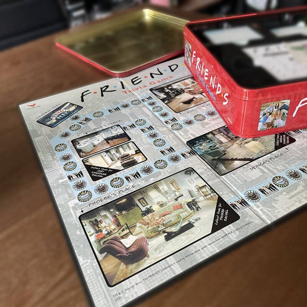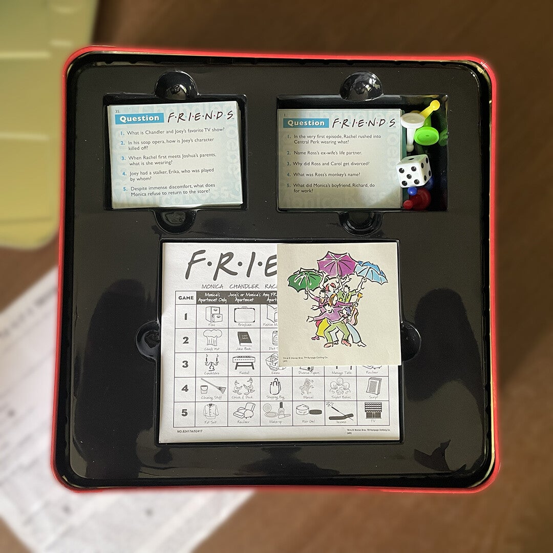 FRIENDS Board Game TV Show Trivia Red Tin Box 2003 By Cardinal