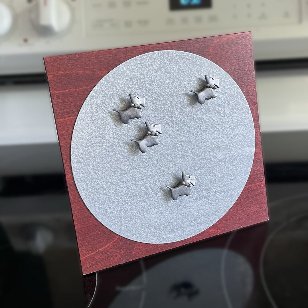 This desk magnet board is adorned w/ 4 adorable scottie dog magnets!