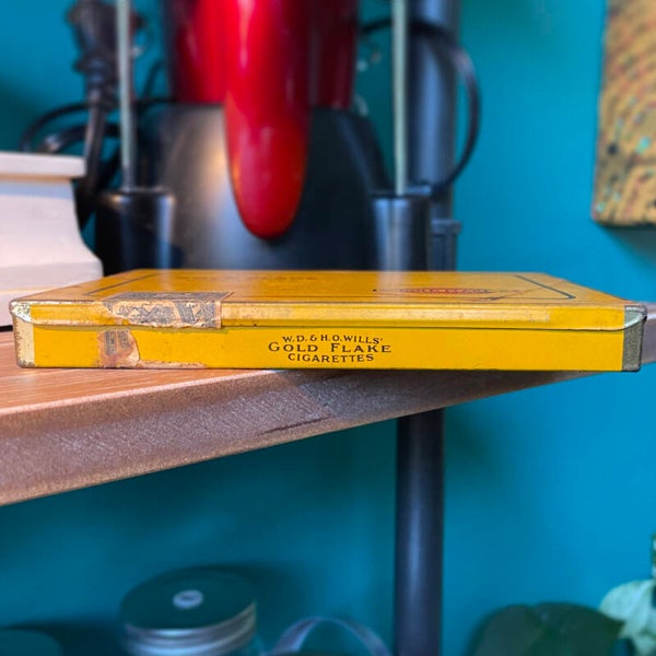 This vintage cigarette tin has some wear & tear on it but the government seal is still partially attached.Scratches but no dents.