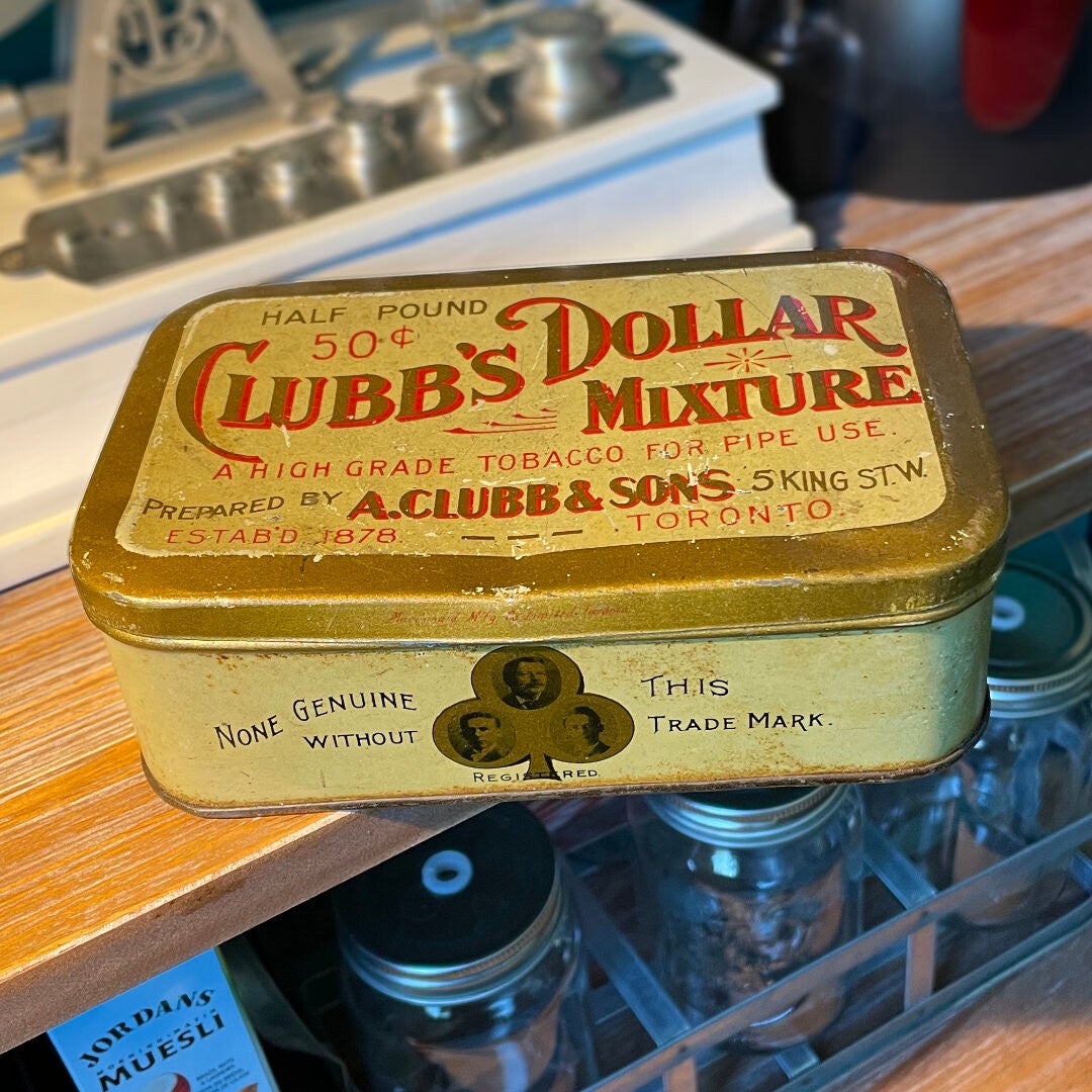 Vintage high grade pipe tobacco tin prepared by A. Clubb & Sons. Established 1878 in Toronto Ontario.