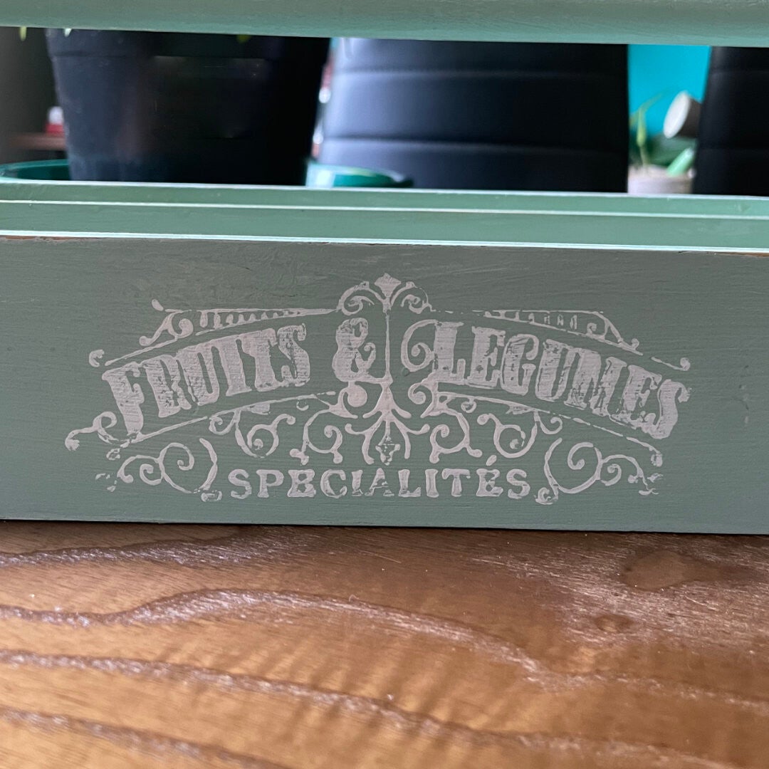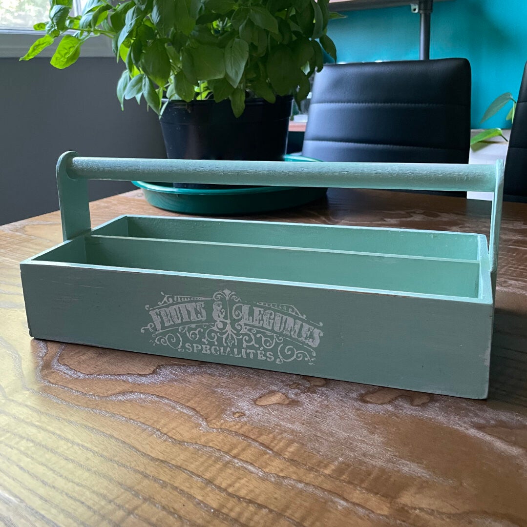 This tote is not only beautiful but also functional. Handpainted & stenciled w/ fruits & Legumes.