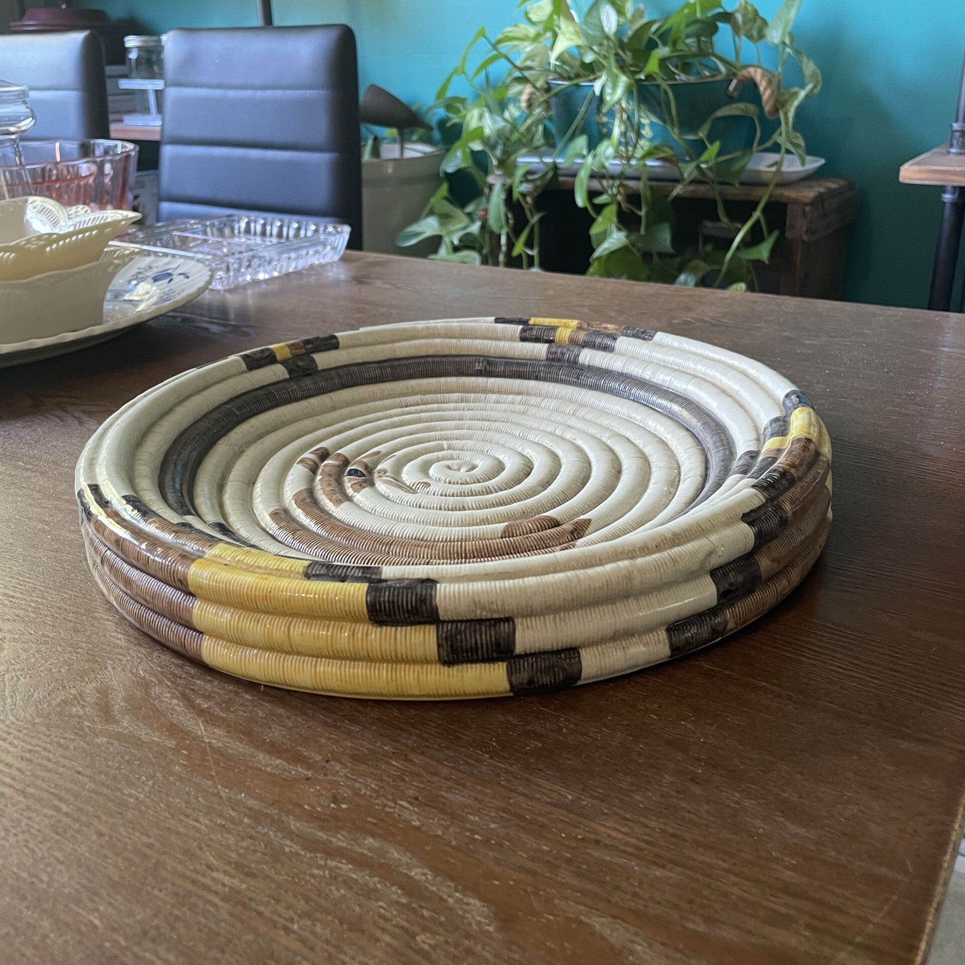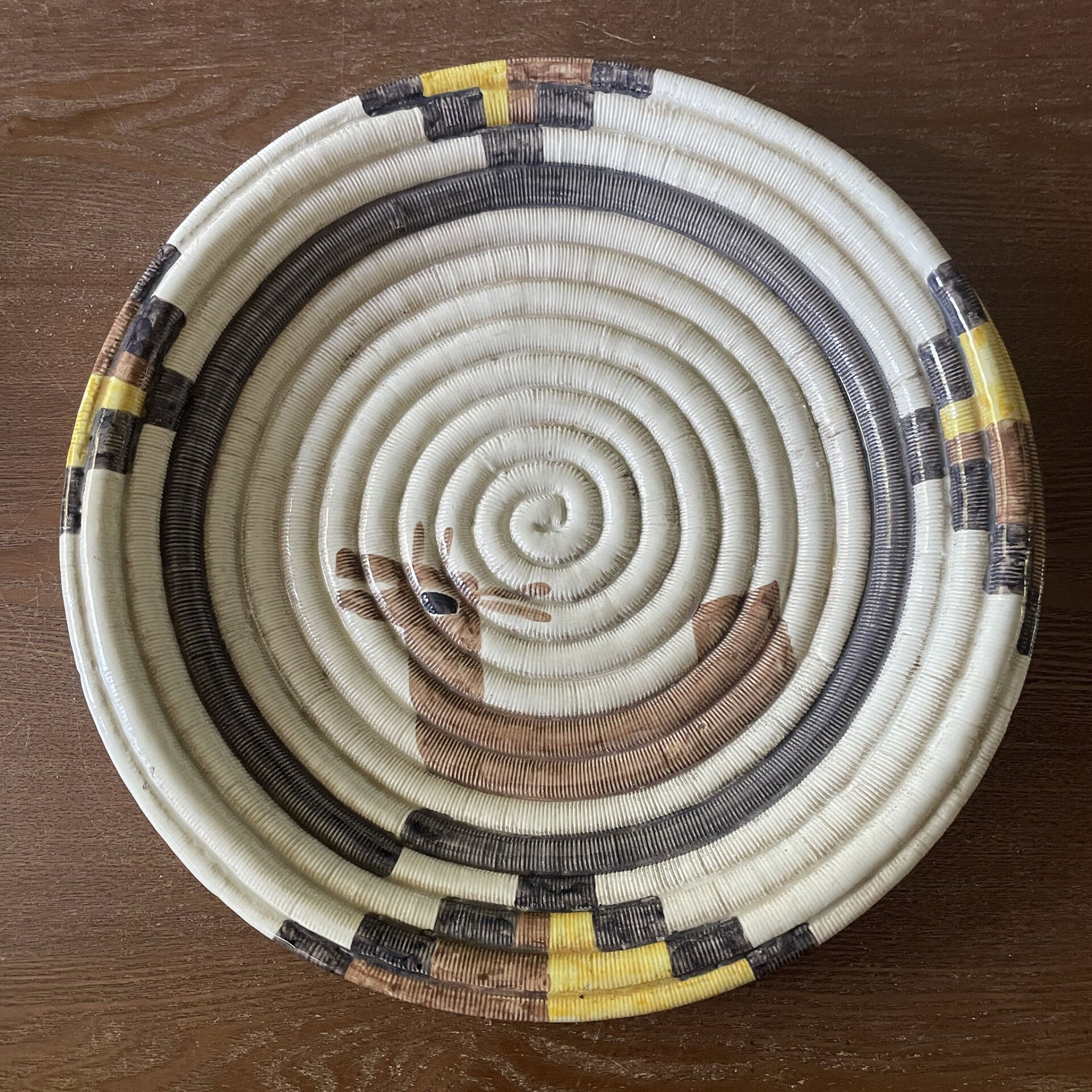 This rare stunning piece hails from the 1970s and was crafted in Italy by Decorato A Mano Ancora. Please note that there is a small chip, as shown in the last photo.